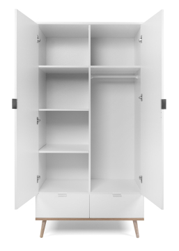 Kaapin runko kätkee sisäänsä runsaasti säilytystilaa: tilavat hyllyt ja ripustustanko auttavat pitämään vaatteesi järjestyksessä ja helposti saatavilla. Korkeat, sirot jalat tuovat ilmavuutta huoneeseen ja helpottavat siivousta kaapin alta.