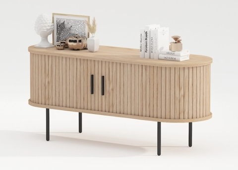 Liukuovellinen Tammi round 120 tv-taso jossa materiaalina aito tyylikäs tammipuuviilu. Tv-tasossa tilava hyllytila jossa kaksi säädettävää hyllyä keskellä ja tasot myös kaapin sivuilla. Korkeat 20cm jalat keventävät ilmettä sekä helpottaa myös siivousta. Tason pohjalevyssä on valmiina läpivienti johtoja varten. Kysy lisää tästä sarjasta.