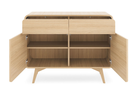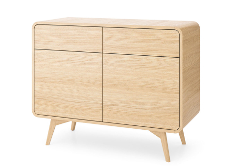 Kaunis ja ajaton, luonnon puunsävyinen Hetta senkki edustaa skandivaanista tyylipiirrettä pyöristettyineen kulmineen. Koko 108x39 cm, korkeus 84 cm. Jalan korkeus 19 cm.