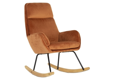 Pehmeä, vesipestävä sekä hyvin kulutusta kestävä kangasverhoiltu. Hyvän istuinominaisuuden omaava selkeälinjainen siro keinutuoli. Metalirunko ja puiset luonnonväriset jalakset antavat tuolille kauniin ulkonäön. Koko 70x90cm, korkeus 109cm. Istuinkorkeus 52cm.