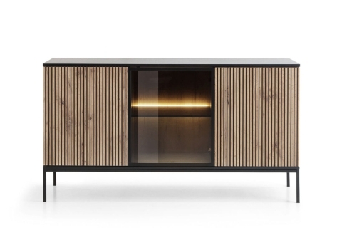 Moderni ja tyylikäs Mooa-senkki, jonka upeana yksityiskohtana on lämpimän sävyinen LED-valaistus. Koko 154x39cm, korkeus 83cm. Jalan korkeus 18 cm.