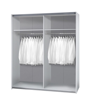 Hyvin tilaa antava valkoinen vaatekaappi liukuovilla. Kysy lisää asiakaspalvelustamme.