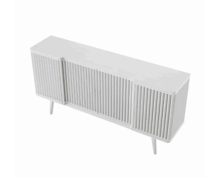 Neljä rimoitettua ovea, jotka paljastavat sinun aarteesi kohdatessasi silmästä silmään, mutta kätkee aarteet sisäänsä kulman takaa katsottuna. Sisään kaartuva muoto on suorien linjojen rikkoja, joka tulee osoittamaan koristeellisuutensa juuri sinun kotonasi.
