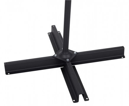 Perus musta aurinkovarjo 2,7 m sivulle metallirungolla. Portaaton korkeus säätö. Helppo käyttää. Kiinnitys terassiin tai voit tilata erillisiä painoja varjon ristikkojalkaan.