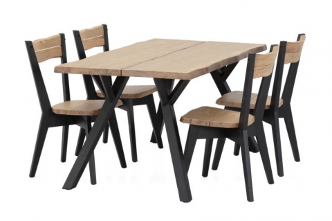 Todella upean muotoilun ja tukevuuden omaava massiivipuinen ja antiikinomainen 4-hengen lankku-ruokailuryhmä. Pöytäkoko 150x89cm. Korkeus noin 75cm. Kansivahvuus 4cm.